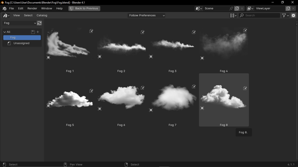 You will get 8 Material with different fog texture.